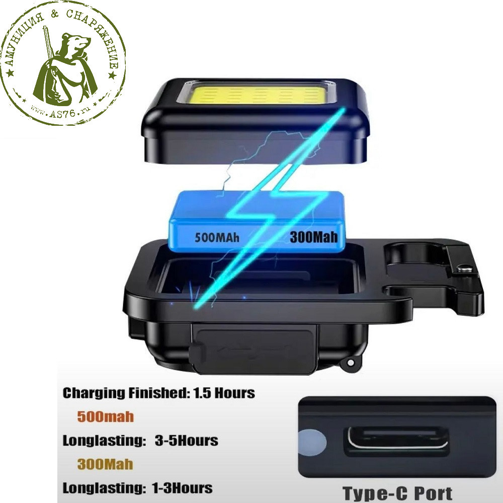Фонарь с карабином COB Keycha оснащен мощным магнитом и аккумулятором ёмкостью 500 mAh, что обеспечивает длительное использование и удобство крепления. Его компактный размер и легкость делают его идеальным аксессуаром для походов, активного отдыха и повседневного использования.