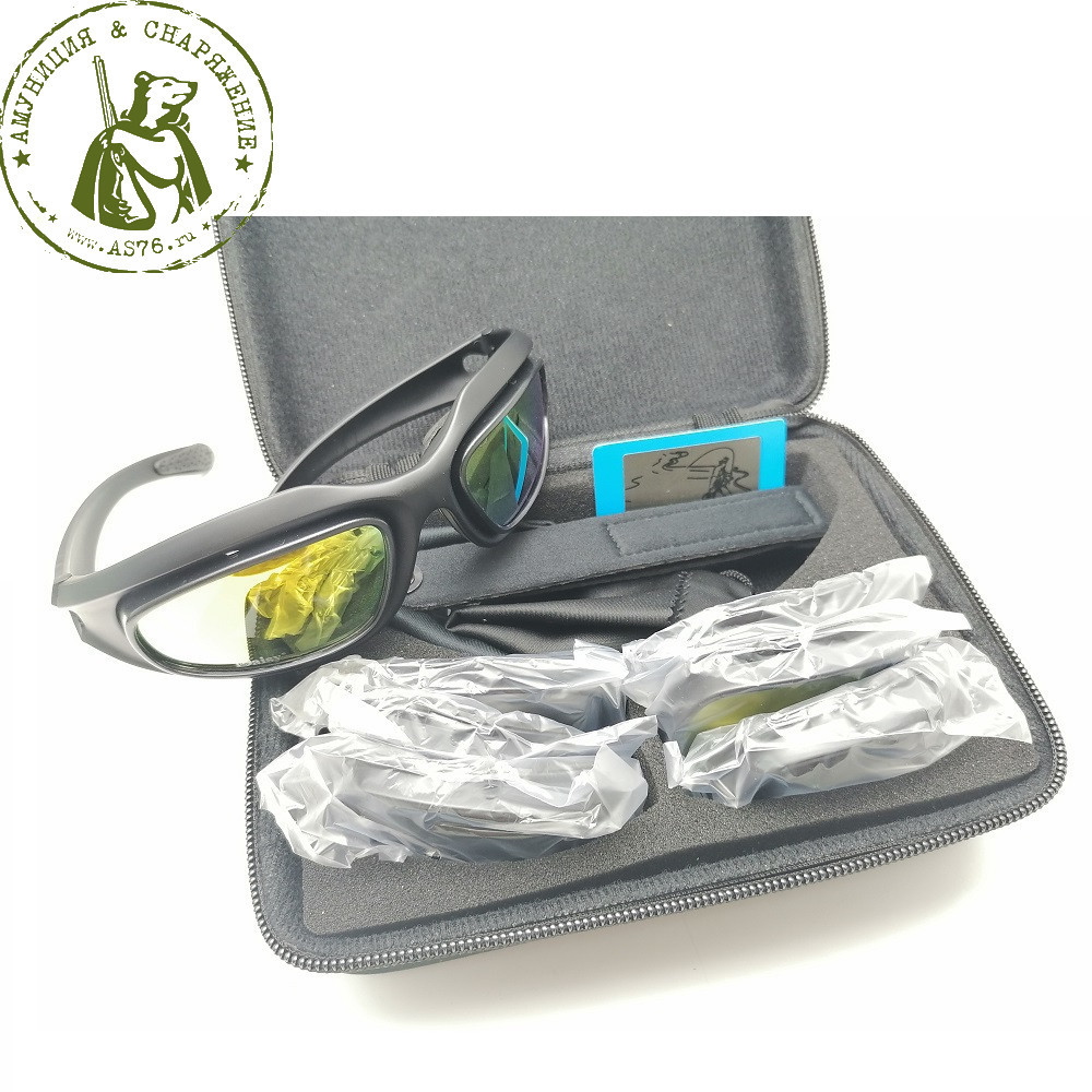 в комплекте четыре сменные поликарбонатные линзы: нейтральная серая, медно-коричневые, желтая, прозрачная MLC (с многослойным покрытием).