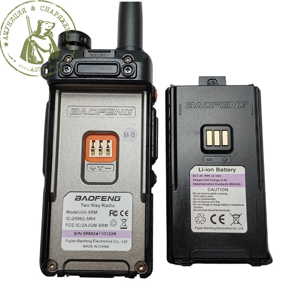 Baofeng UV-5RM — мощная портативная радиостанция 10 Вт с расширенными диапазонами (TX: 136-174/220-260/400-520 МГц; RX: +108-136 AM авиа +350-390 МГц) и высокой чувствительностью 0.2 мкВ. Обеспечивает связь до 12 км на открытой местности, идеальна для экстремальных условий. Аккумулятор Li-Ion 2500 мАч с Type-C зарядкой (до 17 часов работы), цветной TFT-дисплей 1.77", аналоговый скремблер, CTCSS/DCS, беспроводное копирование каналов.
