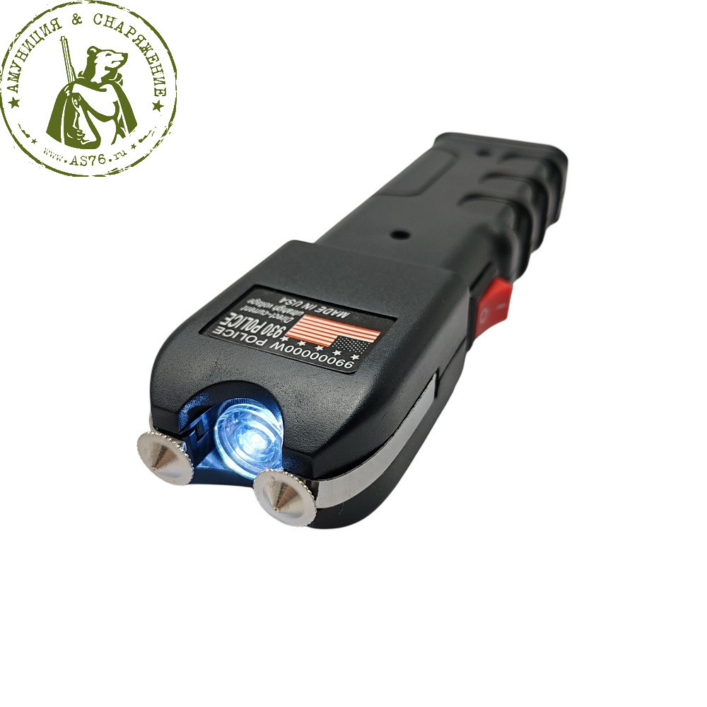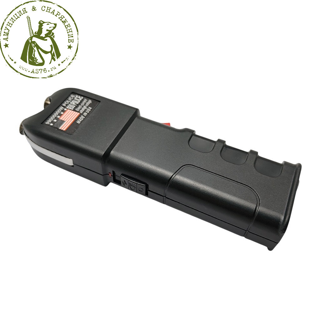 Электрошокер имеет дополнительный предохранитель от случайного срабатывания и встроенный фонарь.
