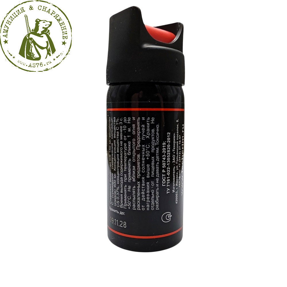 Перцовый газовый баллончик Блэк с выбросом действующего вещества и крышкой Флип-Топ с защитой от случайного нажатия в кармане.